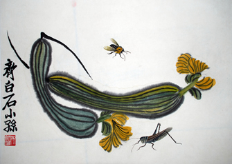 蜜蜂、丝瓜、蚂蚱(草虫册页)