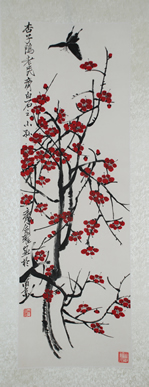 梅花八哥(三尺挂轴)