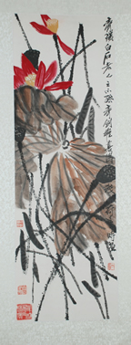 秋荷(三尺挂轴)